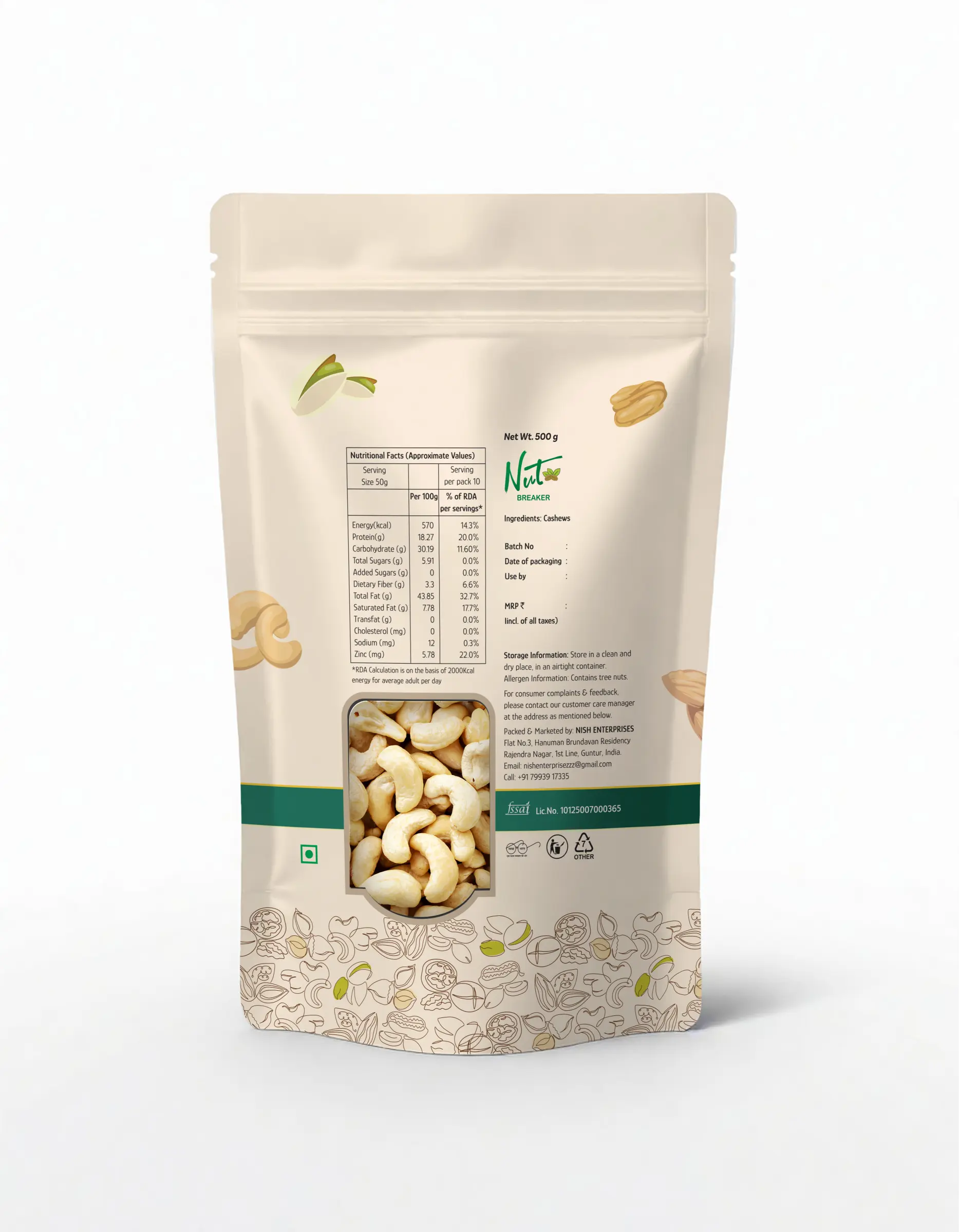 Our Premium Cashews are carefully selected and packed to ensure exceptional freshness and taste. Naturally rich in protein, healthy fats, magnesium, and essential minerals, these cashews are a wholesome choice for daily snacking, energy, and overall wellness.